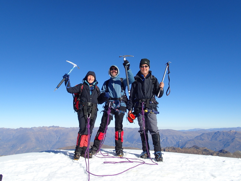 Judy Matthews, Les Matthews & Jim Cook Summit of Diablo Mudo, 5350m, Cordillera Huayhuash Peru June 2013 |